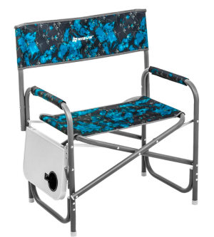 Кресло складное с небольшой боковой подставкой, куда интегрирован подстаканник.