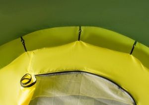Дно из прочного водонепроницаемого полиэтилена позволяет устанавливать палатку на жесткой траве, песчаной поверхности и глине.