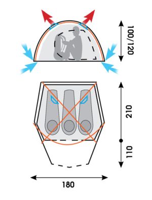 Легкий внешний тент вместе с внутренний палаткой обладают яркой расцветкой из профессиональной линии Talberg.