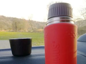 Термос с лямкой для транспортировки, удобной ручкой и двумя чашками обеспечит любимым напитком на пути к Вашей цели.