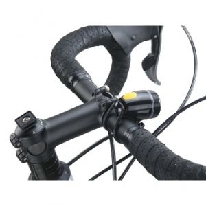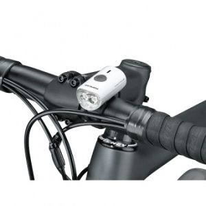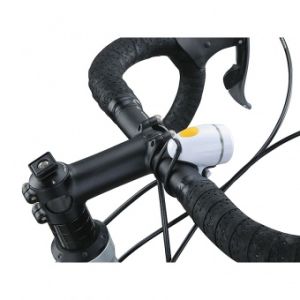 Яркий LED светодиод мощностью работает в режиме постоянного свечения с мощностью или мигает. Велофонарь крепится к рулю с помощью съемного брикета.