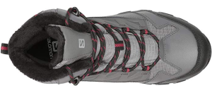 Зимние ботинки Salomon не боятся воды и холода. Благодаря мембране и высокой подошве они хорошо защищают ноги владелицы от ветра, сырости и низких температур.