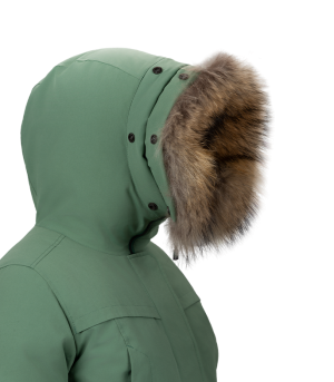 Тёплое городское женское пуховое пальто для серьезных морозов. Баенка МС может применяться в полярных регионах и в зонах с резко выраженным континентальным климатом в качестве экспедиционной или повседневной одежды в холодное время года.