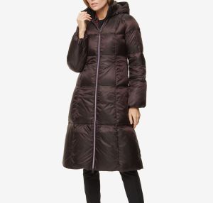 Стильное удлинённое зимнее пальто с капюшоном.